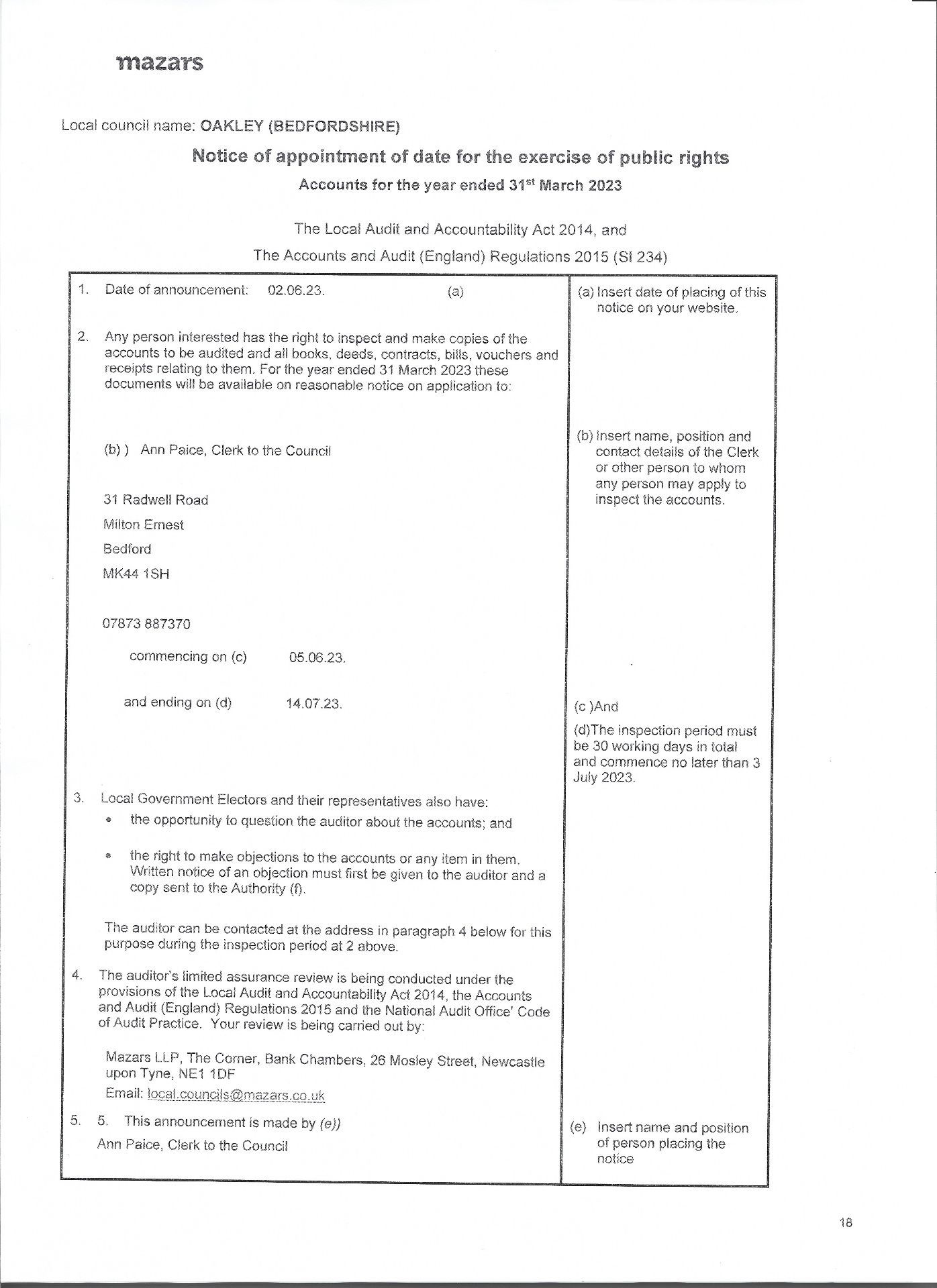 - Oakley Parish Council - audited AGAR 2022-23.pdf